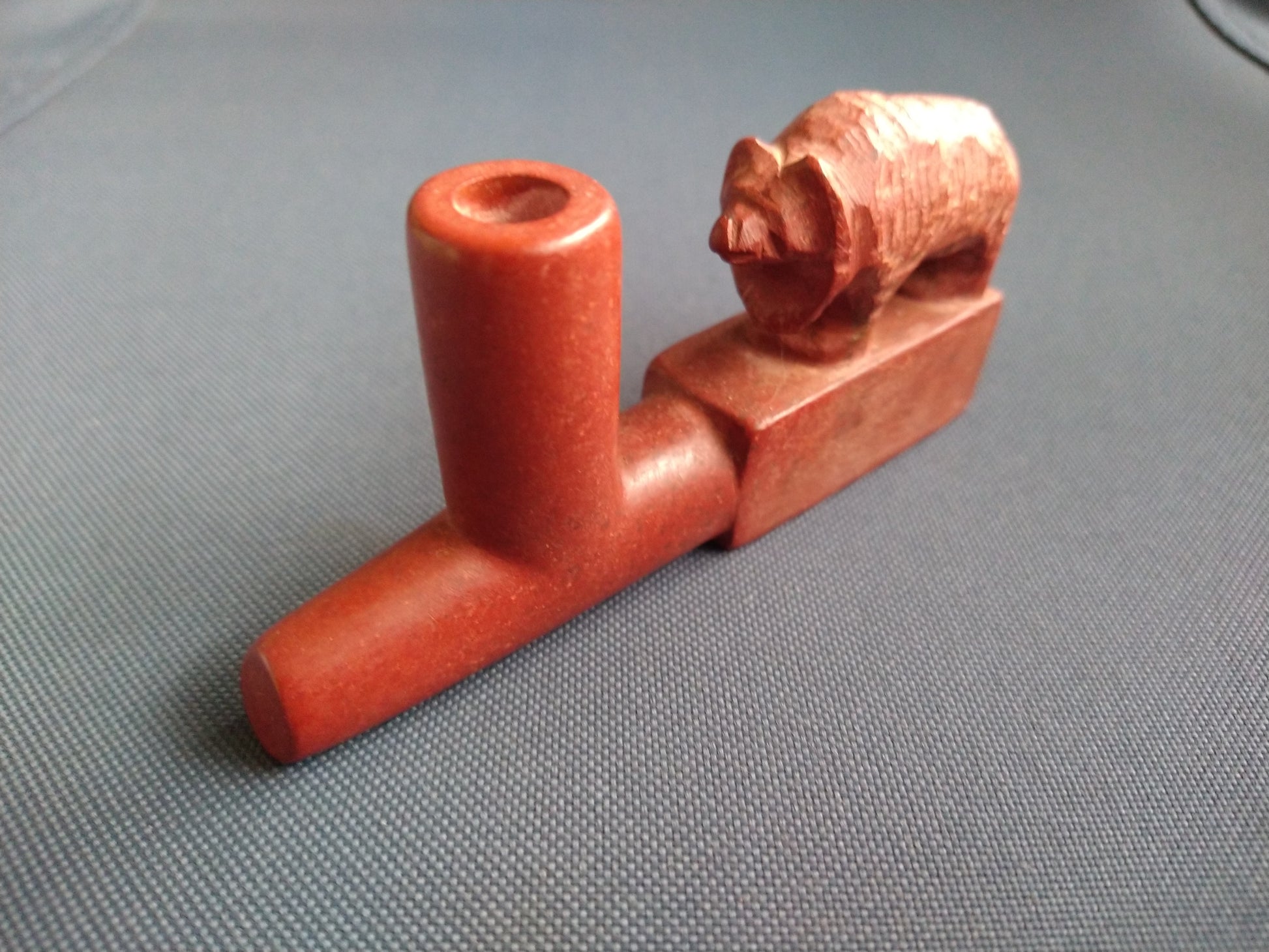 Vintage Carved Red Pipestone Catlinite Bear Pipe Bowl (No Stem) by Master Carver William Billy Bryan AKA Big Eagle.